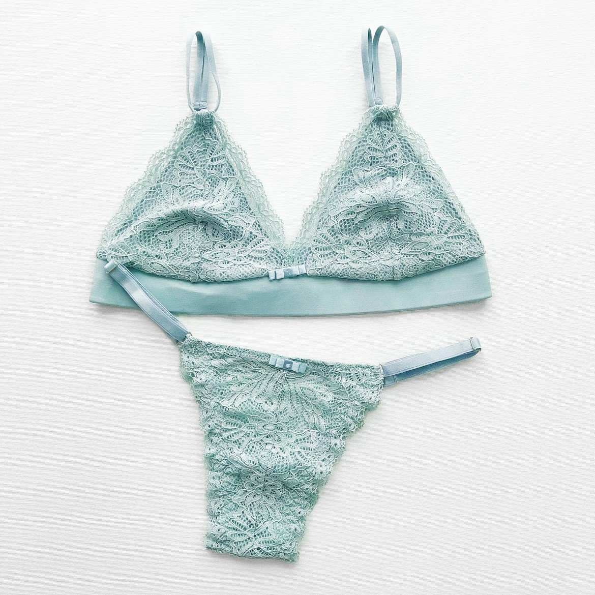 O conjunto Betina é simplesmente um charme! Ele cai bem em todas as ocasiões: você pode usá-lo no dia a dia e se sentir super linda e confortável, e também estará poderosa ao usá-lo em uma ocasião mais especial! O sutiã do Betina é modelo triângulo sem bojo, todo confeccionado em renda e forrado no busto, além de possuir fechamento nas costas. A base do sutiã possui um elástico forrado com tecido em microfibra que garante uma excelente sustentação à peça. A calcinha é modelo string, toda trabalhada em renda, com regulagem nas laterais e forro 100% algodão. Impossível não se apaixonar!