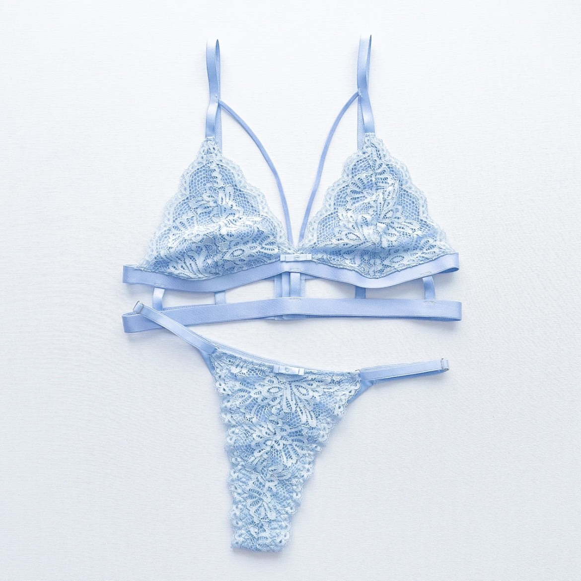 O nosso conjunto Alexia é um verdadeiro arraso! Ele é composto por calcinha string rendada com regulagem nas laterais, cintura mais alta e fio duplo em microfibra na parte de trás (forro 100% algodão). O sutiã é modelo triângulo, sem bojo e forrado. O detalhe mais que especial dessa peça fica por conta do strappy na parte da frente, que traz uma pegada super sensual para essa peça sem deixar de lado o romantismo e a delicadeza da renda! Simplesmente perfeito!