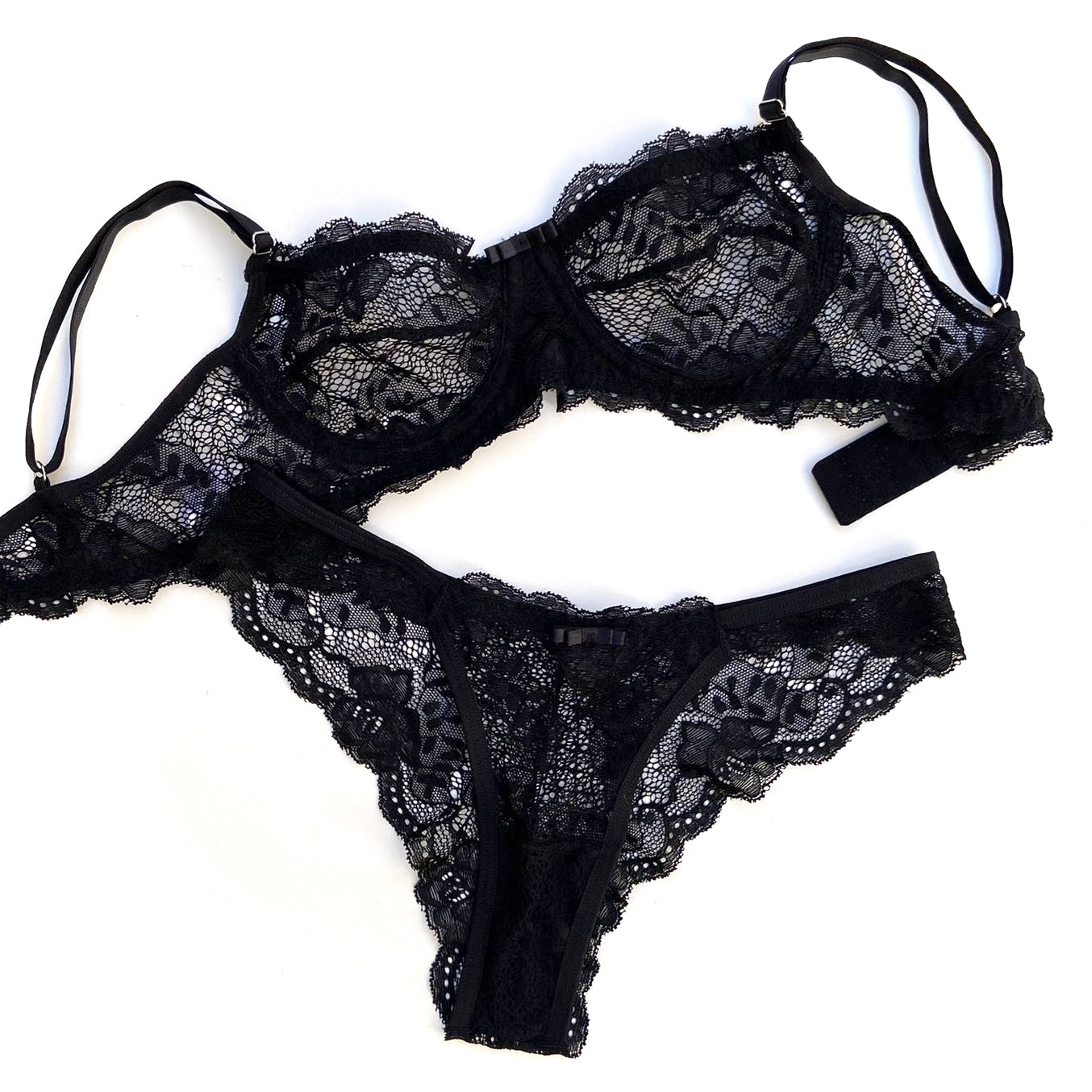 O conjunto Carolina liso é super delicado e romântico! Ele é composto por sutiã sem bojo, com aro e sem forro, além de possuir abotoamento nas costas. A calcinha é modelo semi fio, toda confeccionada em renda e com lateral mais larguinha (forro 100% algodão). Um charme!